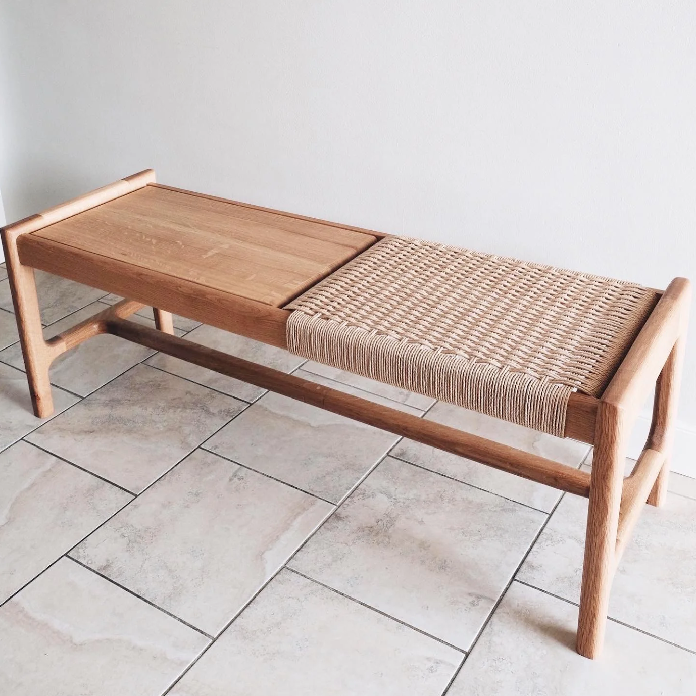 Papel Papercord Bench, White Oak wood and Danish Papercord, 25"L x 16"W x 19"H