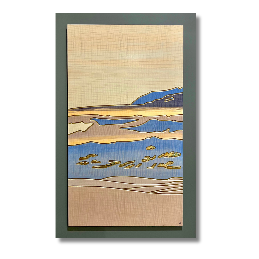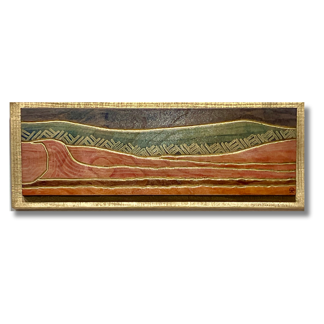 "Where the Sky is the Closest", A Prairie Seen #151, stain, lacquer and metal gilding on figured maple veneer, 22.5" x 12.875" SOLD