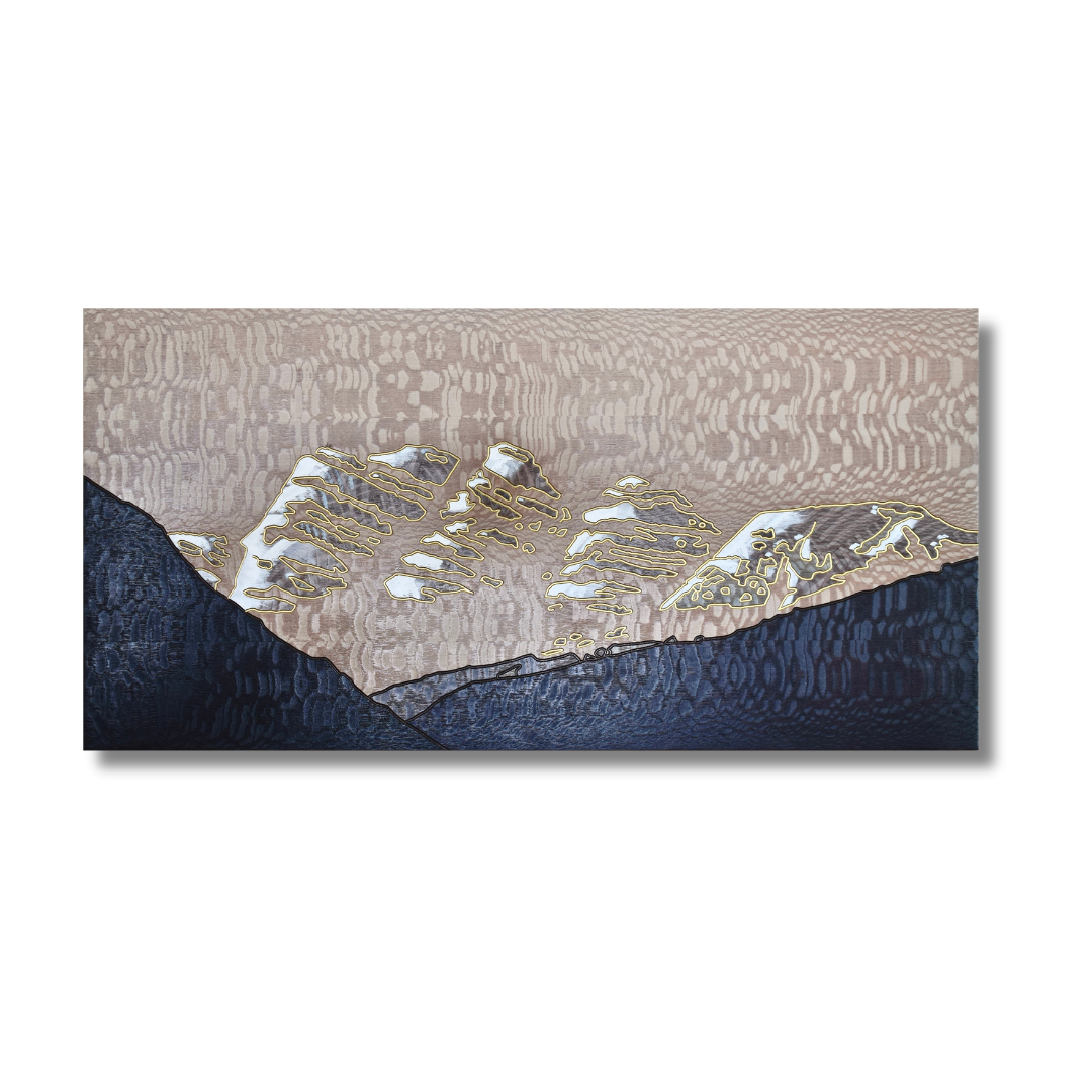 "Peaks Rise in Silence", A Mountain Seen 'S', 34.96″ x 32.875”
