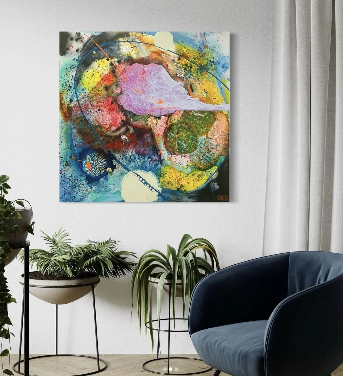 From large-scale resin paintings to designer pillowcases through his promotional product company, Spark in Sherwood Park, Glen explores a range of formats. He also offers commissions, painting parties, and live art experiences.
